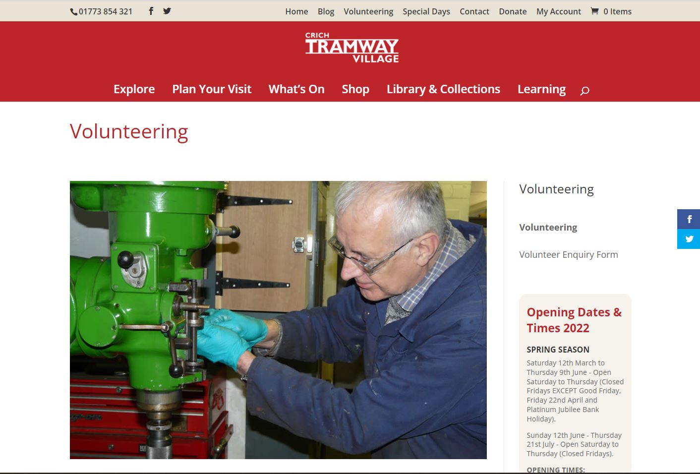 For more information on volunteering for the museum, please take a look at the Crich Tramway Village website Volunteering page for more information.  Click on the image to visit the page.